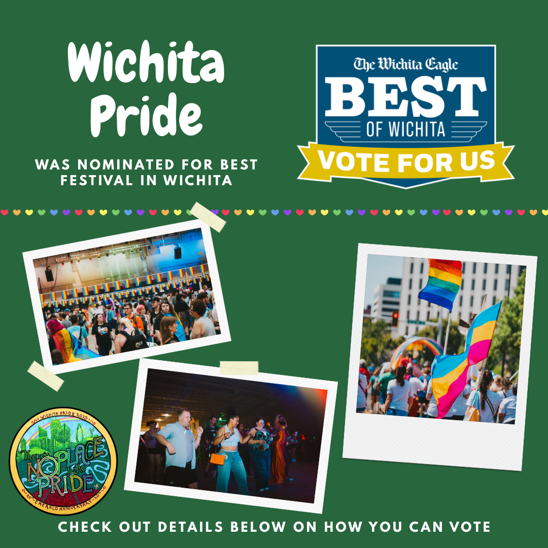 You did it Wichita! Wichita Pride, Inc. Pride Festival has been nominated under the Best of Wichita Annual Festival Wichita Pride’s Emerald Anniversary was nominated for the Best of Wichita contest hosted by @wichitaeagle for the category of Best Annual Festival! Voting is August 18th through September 5th!! If you want to help us win […]